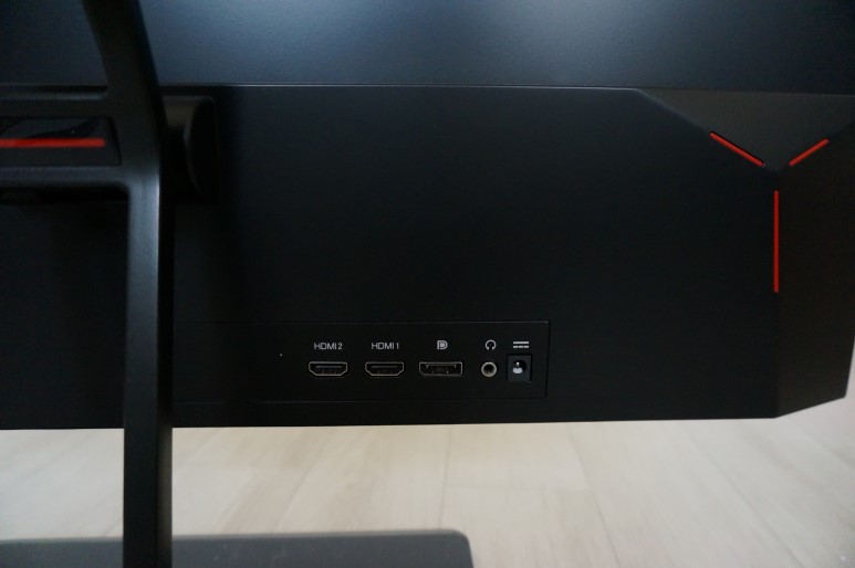 영상 입력단자는 총 3개로 무난한 구성인데요. DP 1개와 HDMI2개가 제공됩니다. 모니터의 180Hz의 고 주사율을 최대한 활용하려면 DP포트로만 가능한 점은 사전에 체크하시기 바랍니다. 3.5mm 오디오 출력 단자도 제공되어 모니터에서 바로 헤드폰을 연결할 수 있도록 한 작은 배려가 돋보입니다.